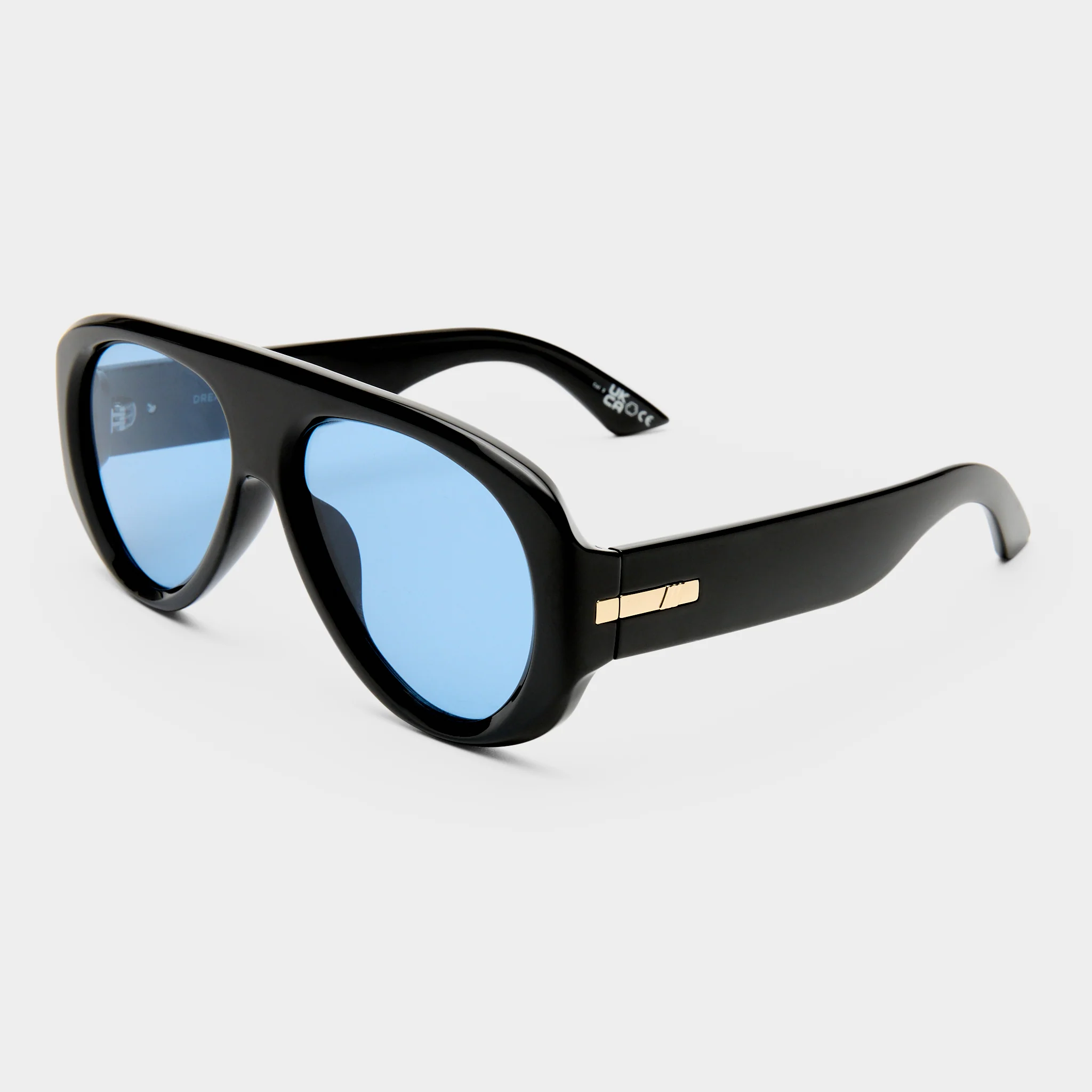 • Finished in a black frame with blue mono lenses.